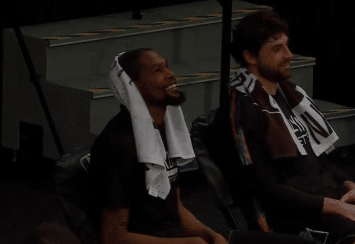 24直播网讯 等了杜兰特太久了,他一回来篮网就让人看到了NBA即将大结局的一幕,若不是末节卡巴罗自信浪投(10中1)恐怕这场比赛会是篮网单方面的大屠杀!