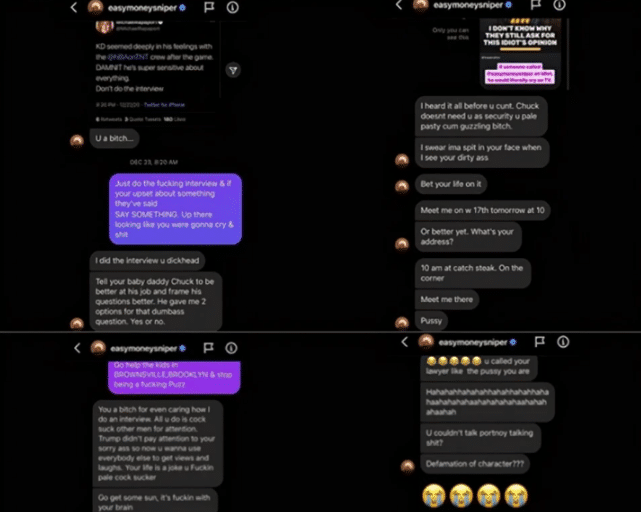 24直播网讯 前段时间杜兰特最大的新闻就是被联盟罚款5万美元,这件事情的起因是演员迈克尔-拉帕波特(Michael Rapoport)在社交媒体上公开了他和杜兰特之间的聊天记录,其中很明显杜兰特有很多不当的言论,使用侮辱性的词语,其中就包括歧视等等。虽然杜兰特很快就进行了道歉,但据悉迈克尔-拉帕波特没有接受杜兰特的歉意,而且还找到了律师,希望进行维权。后期这件事情以NBA联盟罚款杜兰特5万美元而结束,但对于迈克尔-拉帕波特来说,这件事情并没有这么简单。