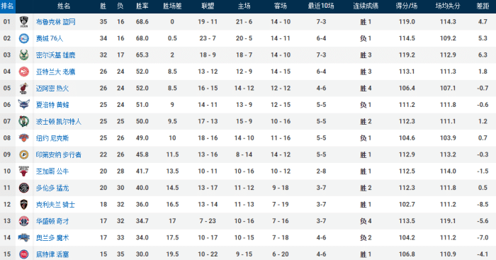 24直播网讯今天NBA常规赛东部球队的表现都很出色,其中骑士24分大胜马刺、活塞24分大胜雷霆,东部球队之间的对决中,篮网在纽约德比中2分优势险胜尼克斯,重返榜首。猛龙依靠着特伦特的绝杀击败奇才。这样东部的格局发生了很大的变化:
