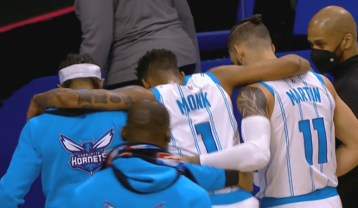 末节的比赛开始后,黄蜂轰出一波10:0打停篮网,暂停回来阿德重新回到场上,回到场上后阿德先是单打命中,随后助攻哈里斯三分也有,比赛中段黄蜂遭遇到了伤病打击,刚刚复出的蒙克遭遇到了90度崴脚直接队架回了更衣室,今天的比赛他刚刚复出,沙梅特三分再中,两队分差来到了21分,比赛就此失去悬念,两队皆是换上了替补阵容,篮网战胜黄蜂4连胜。今天的比赛篮网这边6人得分上双,阿尔德里奇首秀得到了11分9篮板6助攻2抢断1盖帽的数据,他无缝衔接,欧文15分11篮板8助攻2盖帽1抢断,有球迷调侃道:欧文逐渐登化。杰夫-格林、T-约翰逊、沙梅特皆命中了5记三分。当然了杜兰特是无可争议的第一功臣,是他打了第一通电话给阿德。