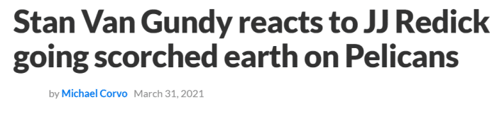 24直播网讯北京时间4月1日,雷迪克在一档播客节目上炮轰老东家鹈鹕言而无信,他表示自己在交易截止日获悉被交易到独行侠后非常生气。鹈鹕主帅大范甘迪第一时间回应昔日弟子的言论。