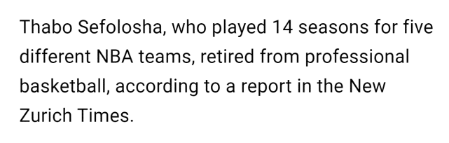 24直播网4月1日讯 ,据美媒报道,36岁老将萨博-塞弗洛沙正式宣布退役,他在NBA打了14个赛季,效力过5支球队(公牛、雷霆、老鹰、爵士和火箭),生涯累计出场869场常规赛,场均贡献5.7分3.7篮板。