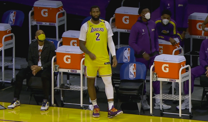第三节的比赛开始后,湖人对首发阵容做出了调整,德拉蒙德没有首发,哈雷尔顶替其首发,转播镜头给到场边的时候,庄神没有穿鞋,他的脚部似乎出现了什么问题,随后前方给出的消息称:庄神的右脚指甲在比赛中脱落,场边进行了包扎处理,随后庄神顶替哈雷尔上场,这一节的比赛雄鹿队越打越顺,一波14:7的小高潮过后,雄鹿将领先优势扩大到了15分,德拉蒙德对字母犯规,这也是他个人第四次犯规,湖人现在的问题就是在球队遇到麻烦,比分落后的时候,湖人没有人能够站出来力挽狂澜,比赛还剩下7分55秒的时候,湖人再次叫出暂停,庄神被换下场,在队医的陪同下,他一瘸一拐的返回更衣室了。