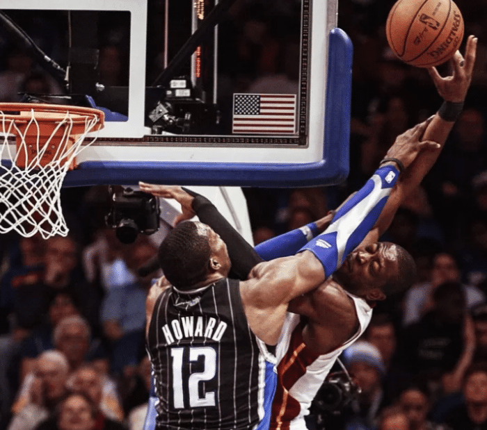 当年在全明星赛上,开赛前大家一起模仿起了詹姆斯抛镁粉。当时在场的东部全明星有詹姆斯、霍华德、罗斯、小斯、韦德。只见他们双手一扬,镁粉便被他们抛向了空中。但此刻画面最显眼的莫过于霍华德的双臂和小腿了。霍华德双臂粗壮且有长度,再配上他显眼的肩宽,简直就是漫画里的超级赛亚人。因为上肢力量足够的强壮有力,这才致使他进入联盟多年,在没有稳定中投的前提下。依靠着背身力量和简单的篮下脚步,依旧可以统治联盟多年的主要原因。再看他修长的小腿,可以瞬间让他在内线完成惊天大暴扣,和送出残暴的麻辣火锅。以这样的身体素质连续三年拿到最佳防守球员,我想你也不觉得奇怪了吧!这么炸裂的霍华德,他是为什么这么快就走下神坛的呢?