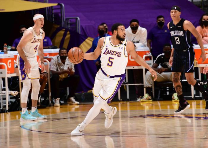 24直播网2月29日讯湖人主场3分险胜魔术,魔术首发五虎年薪加起来是1440万美元,不如施罗德(1550万美元)一人的年薪多,即使如此,无詹眉的湖人依旧赢得很艰难;施罗德24分5助攻6篮板,库兹马21分11篮板,哈雷尔18分11篮板,他们带领湖人拿下胜利。