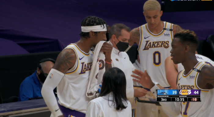 三节战罢,湖人69-69和魔术达成平手,小波特准压哨追平三分太不讲理;末节小加索尔三分终于来了,不过湖人才稍微领先就多次出现失误,魔术一波小高潮反超比分,哈雷尔险受伤是虚惊一场,随后湖人7-0反超比分,湖人拿出引以为傲的防守,库兹马关键三分,波普抢断打响反击,终场前30秒,魔术追到3分,湖人错失关键球,所幸最终湖人主场险胜魔术拿到2连胜。