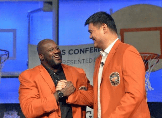 再看一下NBA的巨无霸奥尼尔。巅峰时期的奥尼尔在内线就是一个庞然大物。他在内线横行霸道,破坏力十足。还曾因为过于使劲而扣碎过篮筐。所以人们送他外号为大鲨鱼。当年的姚鲨对决令无数人期待不已,一个靠身体,一个靠技术,每次对决都是火药味十足。只是姚明在退役后的几年,体重的数字在持续上涨。两人再次见面时,奥尼尔在姚明身边就是一个十足的弟弟。跟姚明一比,奥尼尔不仅显得身材娇小,而且还一副小可爱的模样。姚明“小巨人”的称号,可真的不是白叫的!
