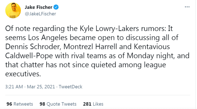 另据NBA记者杰克-费什尔报道,湖人已经对讨论施罗德、哈雷尔和波普的交易持开放态度,换言之,三大主力都被摆上货架,湖人并不排除在交易截止日前送出他们三人的可能性。