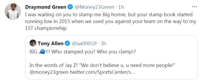 而帕金斯立刻更新社媒回应“奥拉朱旺、本-华莱士和加内特都是比追梦更好的防守者。”而昔日的防守悍将托尼阿伦也是在社媒上讽刺“谁给你盖章了?你又锁死了谁?用Jay Z的话来说,我们不相信你,你需要更多的人”随后格林用15年西决勇士4:2淘汰灰熊来反击托尼阿伦!