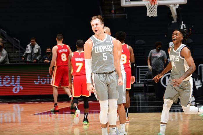 24直播网3月23日讯今日的比赛很有戏剧性,快船在第3节还剩下6分钟落后老鹰21分之多,泰伦-卢选择派上看似放弃比赛的肯纳德、科菲、巴图姆、帕特森和曼恩阵容。