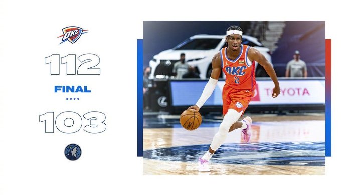雷霆112-103战胜森林狼 亚历山大31分 唐斯33+10 爱德华兹16分