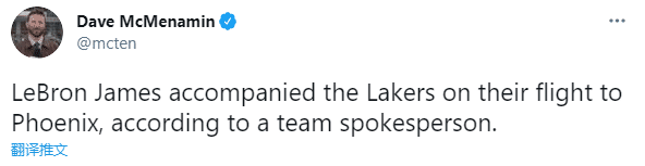 36岁詹姆斯脚踝受伤仍不愿意离开球队,据湖人记者Dave Mcmenamin报道,詹姆斯将会随队飞往菲尼克斯挑战太阳;詹姆斯伤后决定随队出征客场,而不是留在洛杉矶接受治疗,如此决定便能看出,即使因伤无法出战,詹姆斯也要和球队待在一起,不愧为湖人真领袖。