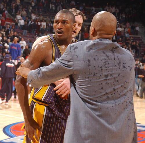 24直播网3月20日讯2004年11月19日 ,活塞球迷约翰和威廉姆两人结伴来到了活塞主场观看比赛,或许在赛前,两人并没有意识到灾难的乌云已经在自己的头上笼罩,当然它也可能是金钱的祥云。