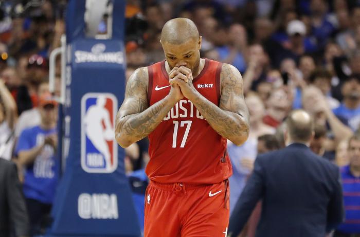 在火箭队效力的3个赛季,塔克场均可以拿到6.5分5.8篮板1.2助攻1.2抢断的表现,但他在防守端的作用是数据无法体现的。