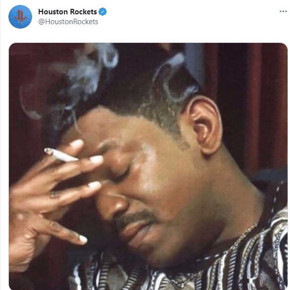 接近最强阵容的火箭打不过东部倒数第一,接下来要打雷霆、猛龙、黄蜂和两战森林狼,火箭如此实力,恐怕至少要惨遭20连败;虽然森林狼西部倒数第一,但全明星之后唐斯和爱德华兹带队反弹,火箭何时能赢球太让人担忧;输球赛后,火箭官方晒出伤心到抽烟的心塞表情。