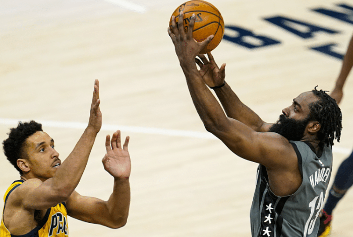 24直播网讯 北京时间3月18日,NBA常规赛的一场东部内战中,依靠哈登的出色发挥,篮网队逆转战胜步行者,本次比赛,哈登出场42分钟,得到40分10篮板15助攻,其中投篮27中13,值得一提的是,这仅仅是哈登代表篮网队出战的第27场比赛,而凭借本场比赛40+大三双的表现,哈登就此成为了篮网队54年队史上第一位能够3次拿到30分15助攻的数据,同时,哈登在代表火箭和篮网出战期间都拿到40+三双,也成为了NBA历史上第三位代表多支球队拿到40+三双的球员,前两位分别是张伯伦和威少。