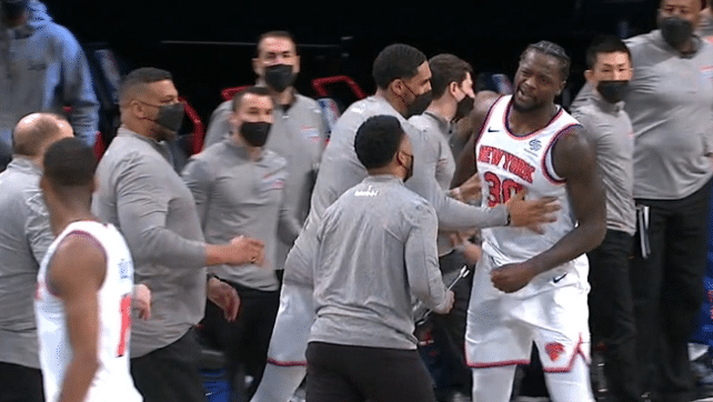 24直播网讯 今天NBA常规赛纽约德比二番战打得非常激烈,篮网以5分优势险胜尼克斯,比赛中篮网大部分时间保持领先,却在末节被尼克斯将分差缩小到3分,尼克斯在还剩下5.7秒的时候落后3分,还有球权,欧文关键防守兰德尔,造成对手走步,哈登两罚全中收割胜利。哈登再度砍下三双,砍下21分15板15助,欧文拿下欧文34分4助,兰德尔空砍33分12板6助3断,赛后他对于裁判的判罚也很不满。