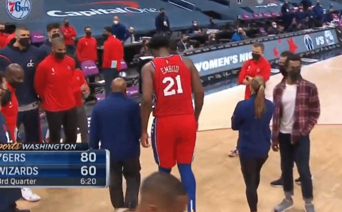 第二节的比赛奇才队进攻端找回手感,贝尔坦斯三分命中,这也是他本场比赛命中的第一记三分球,威少先是一条龙暴扣得手,随后三分也有,分左一度被缩小到了8分,恩比德这一点奇才依然是限制不住,但是好在是奇才自己进攻端打得不错,半场比赛打完的时候,76人63-53领先奇才10分,这一节的比赛奇才遭遇到了伤病打击,三分射手贝尔坦斯因为伤病退出了比赛,不会回归。