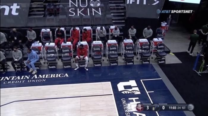 24直播网讯 北京时间3月13日,火箭客场不敌爵士惨遭耻辱15连败,追平队史最长连败纪录,火箭残阵打到最后才输球,这已经赢得尊重,替补席第一排空荡荡,都可以让人躺着睡觉了;小波特全场轰下27分8助攻3篮板,打球有点哈登的影子,难怪外界叫他低配版哈登。