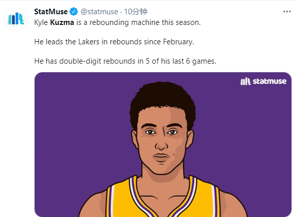 数据最高远远不能体现出库兹马本场比赛对于湖人队的帮助,在湖人再一次发起反击浪潮的时候,正是库兹马接到詹姆斯突破后的传球命中三分球,让湖人完成了关键的反超,随后,库兹马又一个底线三分球和快攻两分,几乎直接帮助湖人锁定胜局。