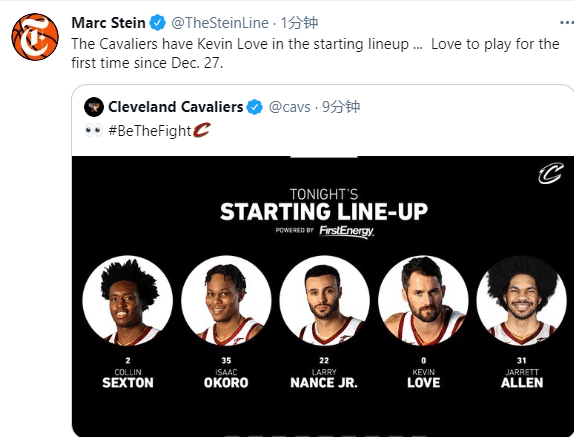24直播网3月13日讯 骑士球星凯文-乐福终于伤愈复出,骑士已经官宣首发阵容,乐福搭配塞克斯顿、奥科罗、小南斯和艾伦一起首发出战,不过乐福将会有出场时间限制,毕竟他已经两个半月没有打过比赛,伤愈归来的第一场比赛,确实不能打太久。