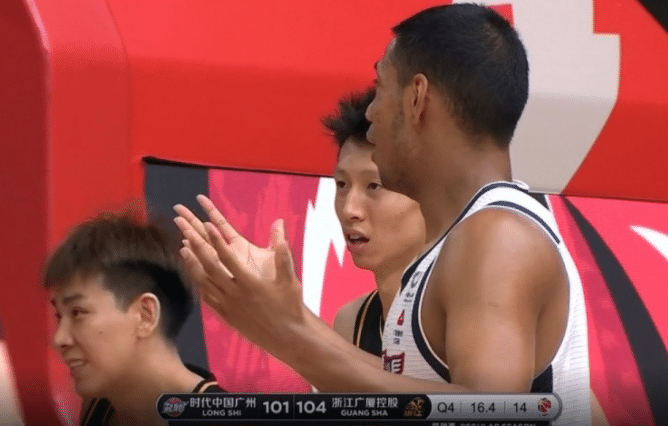 广州101-104落后广厦,不过他们有球权,摩尔出手三分球不中,祝铭震摘板之后补篮也没有投进。摩尔抢到前场篮板之后分球,陈盈骏出手投篮,可惜空位三分球不中,这个时候裁判的哨声响了,他示意在抢篮板的时候祝铭震对孙铭徽的犯规,然后孙铭徽两罚全中,在还剩下16.4秒的情况下分差拉大到5分,比赛胜负的悬念也基本上提前消失。