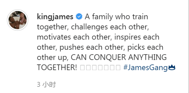 24直播网讯 北京时间3月12日,湖人球星勒布朗-詹姆斯更新社媒,晒出了全家人一起在健身房训练的画面,并配文写道:“一个能够一起训练,挑战和激励彼此,互相启发、推动和帮助的家庭,可以共同征服一切!!#詹姆斯帮”。