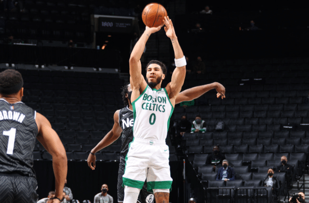 末节哈登先带领替补阵容出战,34岁杰夫-格林险些暴扣,两罚全中后命中三分,篮网12-4攻势打停绿军;暂停回来塔图姆连得5分,泰斯内线暴扣,欧文重新上场,沙梅特和乔-哈里斯纷纷输送三分火力,哈登内线大帽布朗。