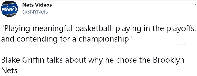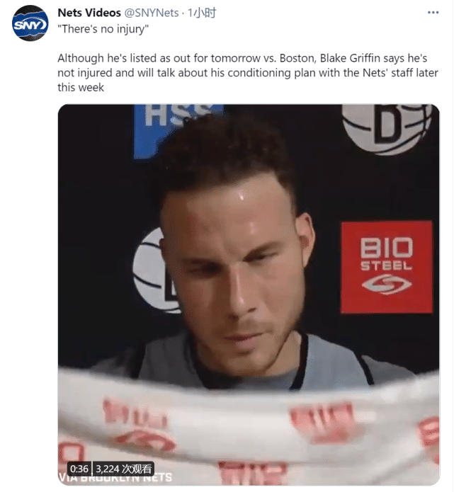 篮网这个比赛日并没有比赛,他们将在明日迎战绿军。这场比赛中,杜兰特缺席,格里芬也无缘首秀。他在采访中也坦言他没有受伤,并且将在本周尽快与篮网沟通自己的情况。谈到为何会加盟篮网,他说道:“打有意义的篮球,打季后赛,去争夺总冠军。”