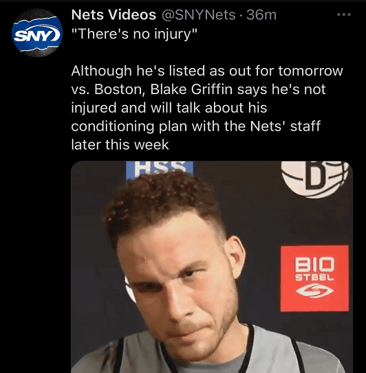 24直播网讯 北京时间3月11日,篮网“五巨头”已经齐聚,格里芬已经正式抵达布鲁克林,但是何时能一起出战?现在还是疑问,明日与凯尔特人的比赛并非全员出战!