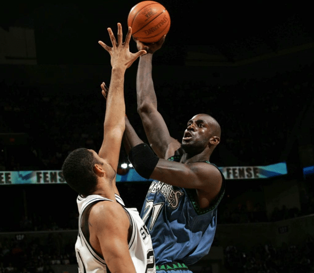 第二、加内特的球风足够的全面。“从1号位打到5号位”。这句话最早是形容魔术师约翰逊的。后期是加内特和詹姆斯。加内特身材、技巧、速度、爆发力都是顶级的,这就注定了他可以在赛场上大杀四方。而他背打后的翻身跳投,更是把球迷看得如痴如醉。加内特是划时代意义的大锋。如果把他放到今天,他会完美契合现在的篮球规则体系和节奏。成为一名联盟争抢的超级巨星。