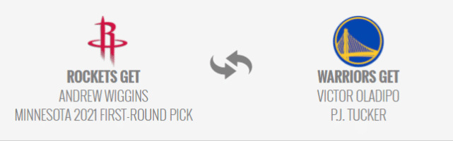 交易方案3:勇士送出维金斯和2021年的森林狼首轮签,得到火箭的奥拉迪波和塔克。