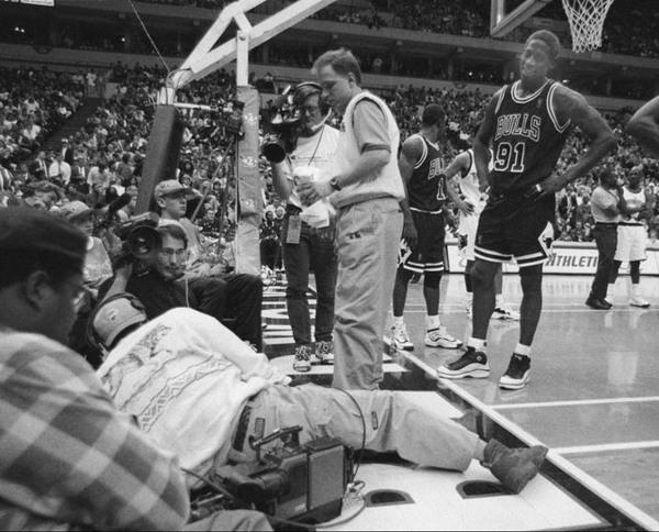 1997年1月15日,公牛队客场挑战森林狼队,本场比赛,罗德曼首发出场打了33分钟,数据方面,6中3拿到了6分15篮板5助攻,对于罗德曼来说15篮板还不足让这场比赛被人铭记,这场比赛会受到关注最重要的是罗德曼对于场边摄影记者的举动。