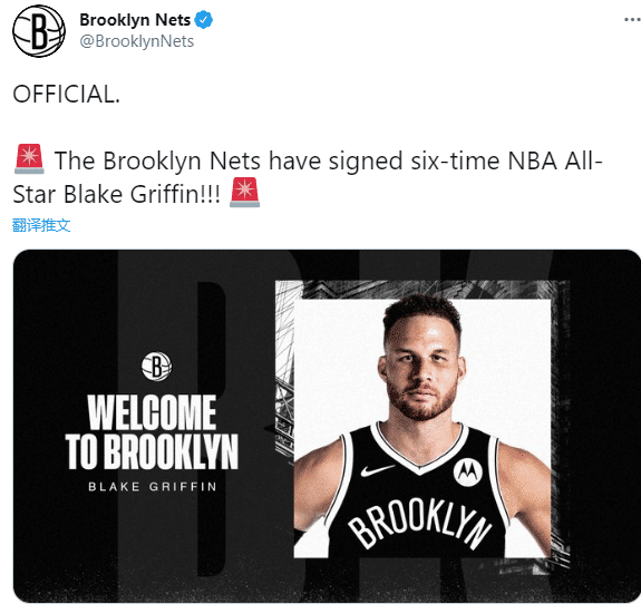 24直播网3月9日讯 全明星赛之后的第一天,布鲁克林篮网正式官宣签约布雷克-格里芬,晒照并且欢迎格里芬来到布鲁克林;据名记shams报道,加盟篮网后格里芬改穿2号球衣,新合同也随之曝光。