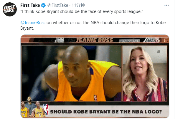 NBA是否该把logo换成科比?珍妮-巴斯表示:我认为科比应该成为每一个体育联盟的门面。