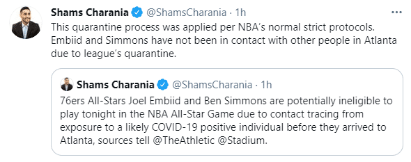 24直播网讯北京时间3月8日,距离NBA全明星正赛只剩下不到8小时时间了,然而根据名记报道,NBA全明星名单将发生了变动,西蒙斯和恩比德因为接触了新冠阳性的理发师将缺席比赛,幸运的是西蒙斯和恩比德并未接触其他全明星球员,根据联盟规定,这两位全明星球员将在亚特兰特隔离,锡安将进入杜兰特队首发。