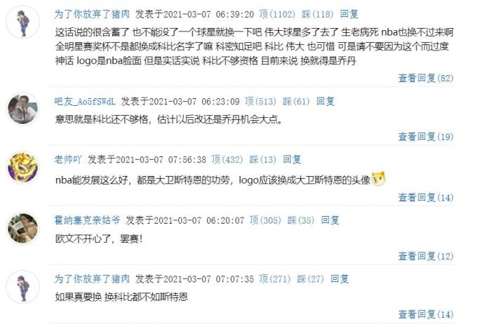 针对欧文和帕金斯等人的观点,球迷们也议论纷纷,但大多数球迷还是比较理智的,他们也并不赞同将科比树立成NBA的新LOGO。我们一起来看看球迷们都说了些什么,有球迷表示:“nba能发展这么好,都是大卫斯特恩的功劳,logo应该换成大卫斯特恩的头像”,有球迷说道:“意思就是科比还不够格,估计以后改还是乔丹机会大点。”,还有球迷表示:“欧文不开心了,罢赛!”,当然这只是一句调侃的话语。总之,大部分球迷的观点和我差不多,的确没有把科比树立成NBA新LOGO的必要。