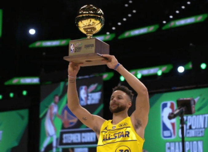 最后一个出场的是库里,库里第一个点拿到了4分,第二个点全部投中拿了6分,他展现出了超强的三分手感,花得球投完的时候他已经轰下了25分,最后一个点得了6分,他轰下了31分以第一的身份晋级,同时31分也是改制之后三分大赛的历史最高得分。决赛比拼,在塔图姆、康利、库里之间进行,米切尔、拉文、布朗。决赛比拼塔图姆手感不佳得到了17分,康利成了大黑马,第一个点他只投丢1球得到了5分,第二个点只投中1球,花点球表现出色命中3球,最终康利轰下了27分,这个得分十分的高了,库里的压力不小,库里第一个点只得到了2分,这也不禁让人替他捏了把汗,但是好在是库里及时调整找回手感,花球点投完库里得到了23分,最后一个点库里花球命中绝杀,库里28分夺冠。