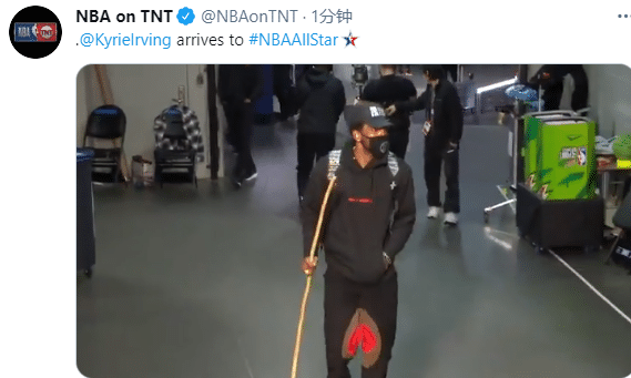 欧文亮相也十分抢镜,穿着一套运动装以及背着双肩包,拄着棍走进球馆,又拿着自己的“打狗棒”来了,篮网双巨真是太另类了。