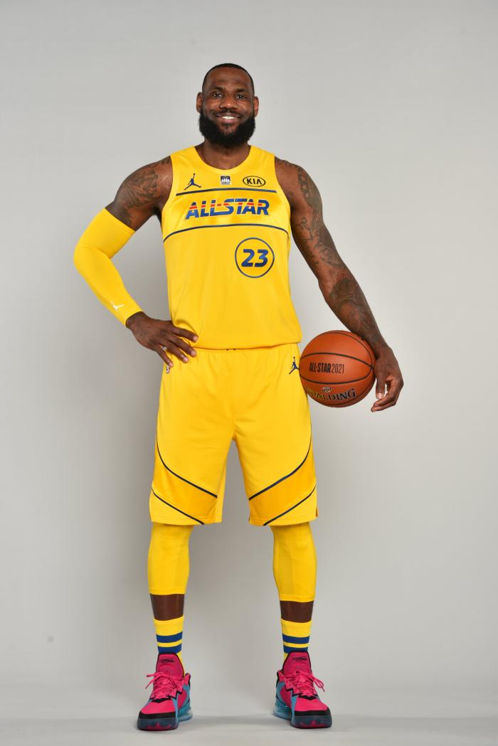 湖人巨星詹姆斯和勇士领袖库里都是身穿黄色球衣,詹姆斯身穿23号战袍出镜,双手抱着印有2021年全明星赛的篮球,满脸笑容露出一嘴大白牙;库里则是身穿30号球衣,同样满脸笑容,双手抱着一个花球;詹姆斯和库里职业生涯首次联手当队友,詹库组合太值得期待。