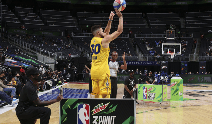 24直播网3月8日讯 今天NBA全明星来袭,本届全明星是在亚特兰大举行的,第一项是技巧挑战赛,冠军是萨博尼斯;第二项是万众瞩目的三分球大赛,有库里、拉文和米切尔等巨星参加,最终结果也已经出炉,属于库里,决赛28分,最后一球绝杀康利;值得一提的是库里成为史上第一位三分赛破30分大关的球员,他预赛投进31分。
