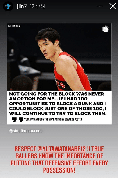 林书豪看到之后也转发,称“RESPECT(尊敬)!!真正的球手知道每个回合都努力防守的重要性!”