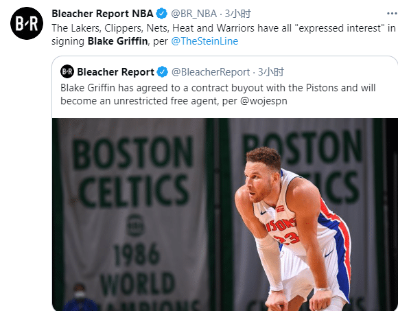 24直播网讯 北京时间3月6日,09年状元布雷克-格里芬正式做出决定,据ESPN名记报道,格里芬已经同意与活塞达成买断,从而成为一名完全自由球员;随后名记曝格里芬六大潜在下家,布鲁克林篮网是最有力的竞争者,湖人、快船等队在列,不过快船目前没资格参与抢人。