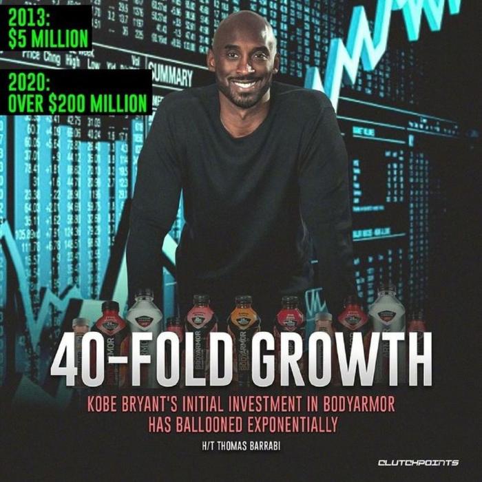 如何和科比产生联系,BodyArmor给科比的广告代言并不高,但是他们开出了另一个条件,科比可以用600万美元的优惠价格获得该公司10%的股份,这样的条件也打动了科比,科比最终决定加入BodyArmor。