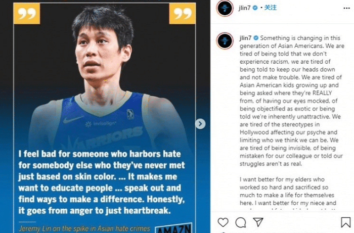 24直播网3月5日讯 近期林书豪吸引了不少人的关注,除了他在赛场上复出之后有不俗表现之外,林书豪在场外的言论也被各界重视,他谈到了在赛场上被对手侮辱是“新冠”,发展联盟也已经宣布要进行调查,还有亚裔被歧视的话题被重新提起,引发了很高的关注度,甚至在社交媒体上也一度登上热搜前列。林书豪是明星级别的球员,这样的事情发生在他的身上就更令人气愤了。