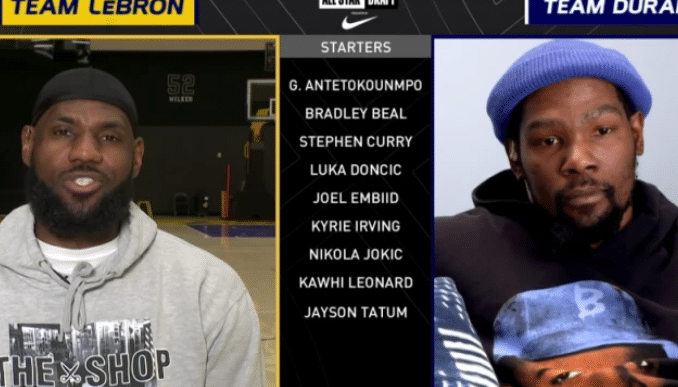 杜兰特队替补:哈登、布克、锡安、拉文、兰德尔、武切维奇、米切尔;