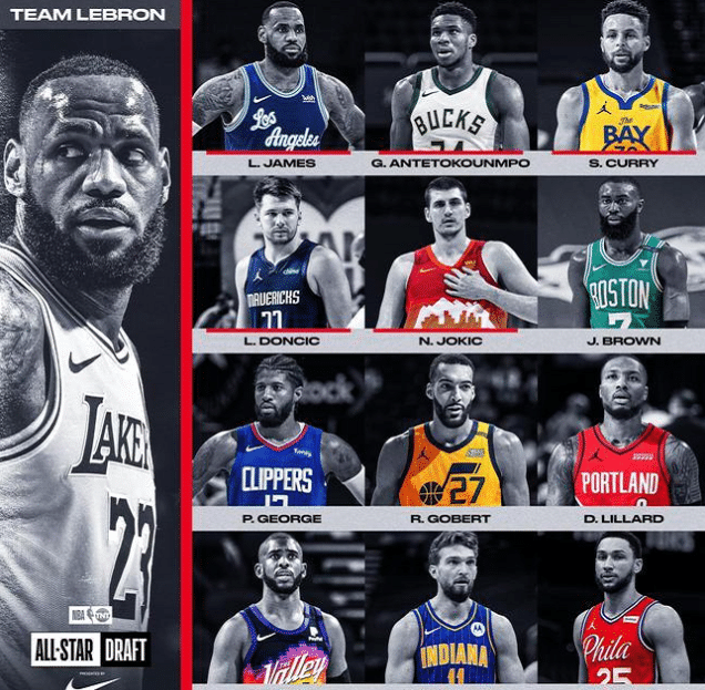 这次全明星队长选人也是非常精彩,当然主要是集中在詹姆斯和杜兰特选人前后,其中就包括了:
