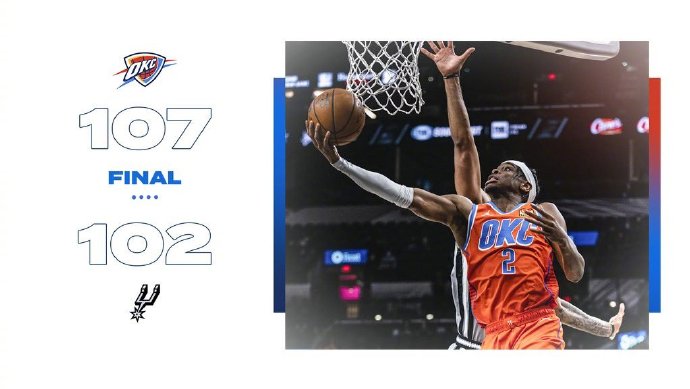雷霆107-102击败马刺 亚历山大33+8 德罗赞20+6