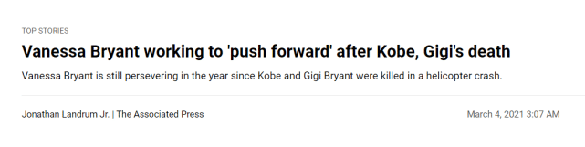 在内页的瓦妮莎章节里,大标题是“你必须站起来并继续前行”。《人物》杂志的作者也在标题下方为瓦妮莎的勇敢点赞。“受到女儿们的激励,科比和Gigi永远在他的心中。瓦妮莎-布莱恩特通过在黑暗中寻找光亮,来克服难以想象的痛苦,并为我们所有人树立了榜样。”