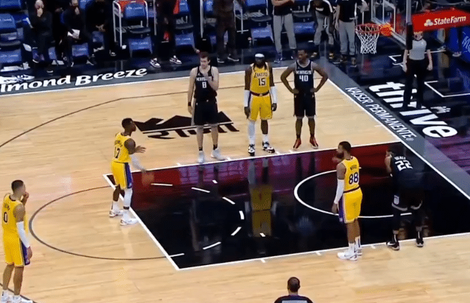 今天的比赛湖人这边派出的首发阵容:施罗德、波普、库兹马、大莫里斯、琼斯。目前两队上半场的比赛已经打完,湖人队61:63落后国王队2分,首节的比赛开始后湖人这边进攻端的状态十分不错,库兹马大号中投命中,大莫里斯篮下也有,湖人一度取得了14分的领先优势,这段时间国王队这边是攻不进,防不住,场上形势十分的被动,首节打完湖人领先8分,第二节的比赛国王队进攻端并回手感,希尔德三分轰进,国王一波小高潮追平比分,国王半场最后一攻,霍姆斯接希尔德传球滞空压哨上篮上进。在詹姆斯和浓眉两大核心不在的情况下,湖人轰下61分也算是打得可圈可点,而且没有让国王队拉开比分,詹姆斯和浓眉不在,湖人有很多的球员站了出来,库兹马半场得到了14分,施罗德得到了13分,替补出场的哈雷尔得到了14分,国王这边替补席上的球员没有人能够限制住他。